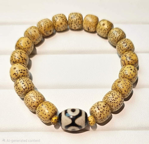 🌙✨ Xingyue Bodhi with 3-Eyed Dzi Bead (10mm) — Wisdom • Growth • Spiritual Focus