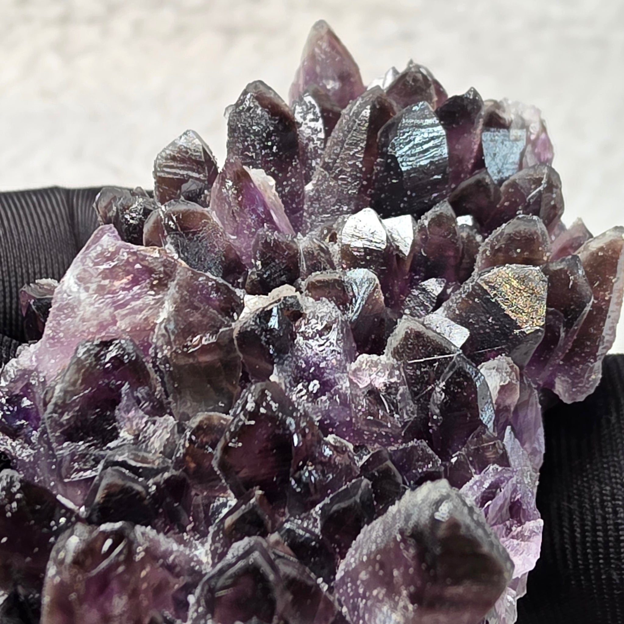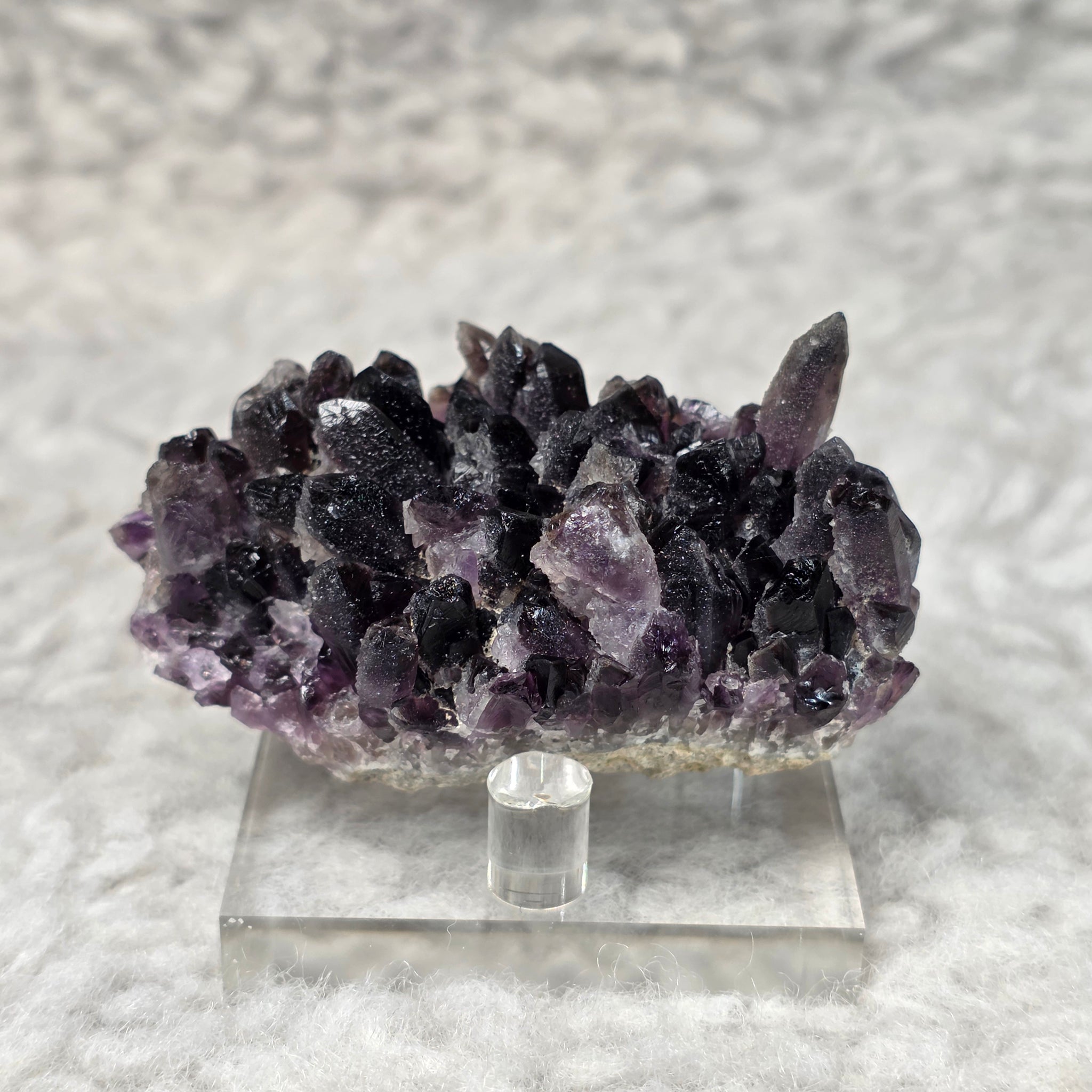 This Amethyst cluster from Bulgaria features deep violet crystals naturally forming a dramatic, sparkling cluster. Bulgarian Amethyst is highly regarded among collectors for its rich colour saturation, clarity, and sharp crystal terminations.