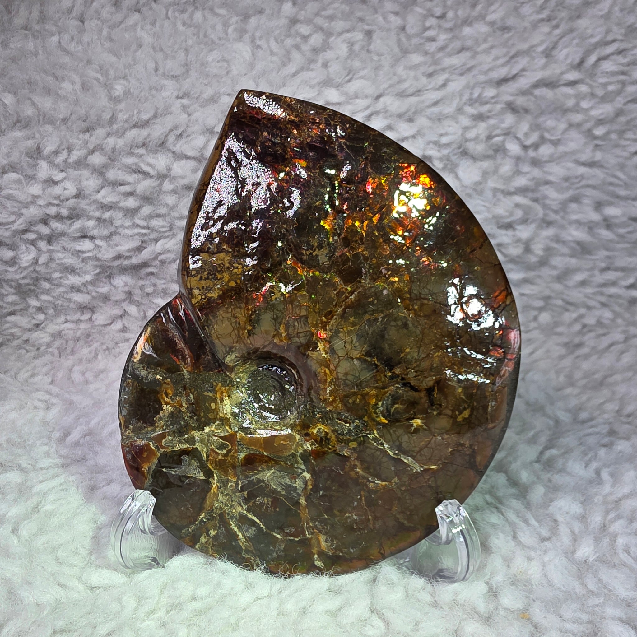 This Ammonite fossil from Canada showcases the iconic spiral form that has fascinated collectors for centuries. The natural spiral is a symbol of cyclical energy, continuity, and natural evolution, making it both visually stunning and energetically significant.