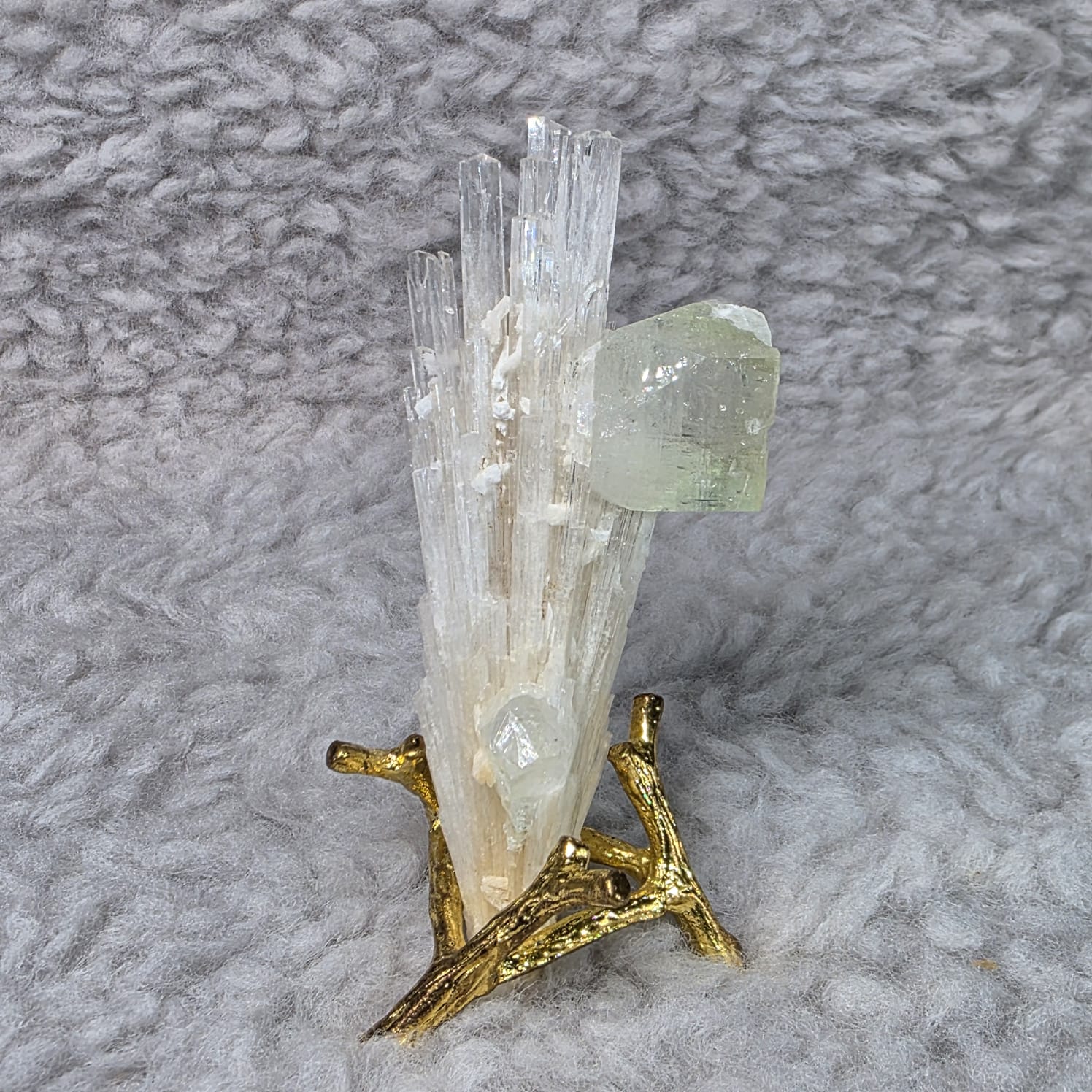This natural Green Apophyllite on Scolecite is a rare crystal combination prized for its gentle yet high-vibration energy.