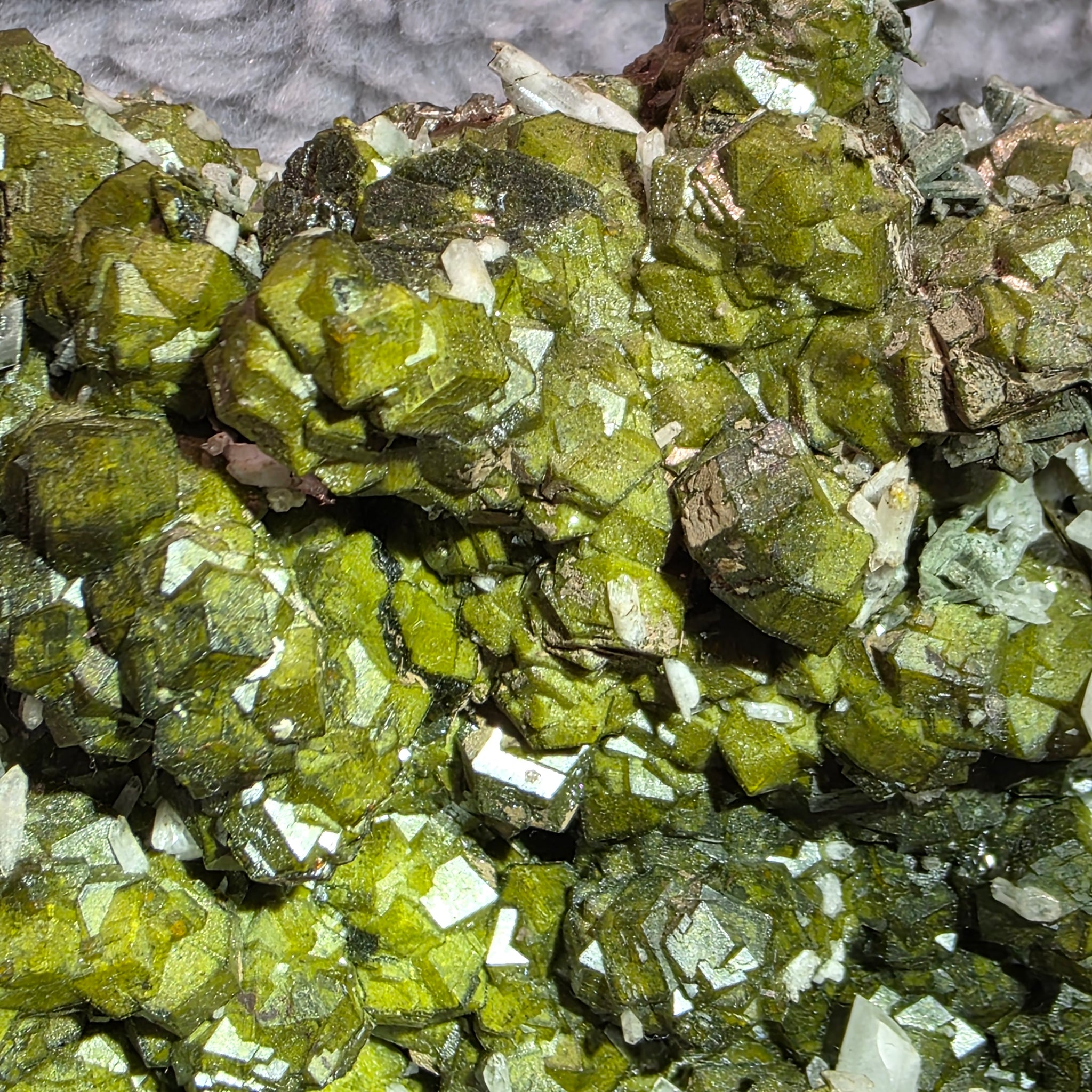 This Green Garnet with Quartz from Inner Mongolia showcases vivid green garnet crystals naturally embedded in clear to slightly milky quartz, forming a striking and unique mineral specimen. The combination of garnet and quartz not only highlights visual contrast and texture but also represents balance between vitality and clarity.