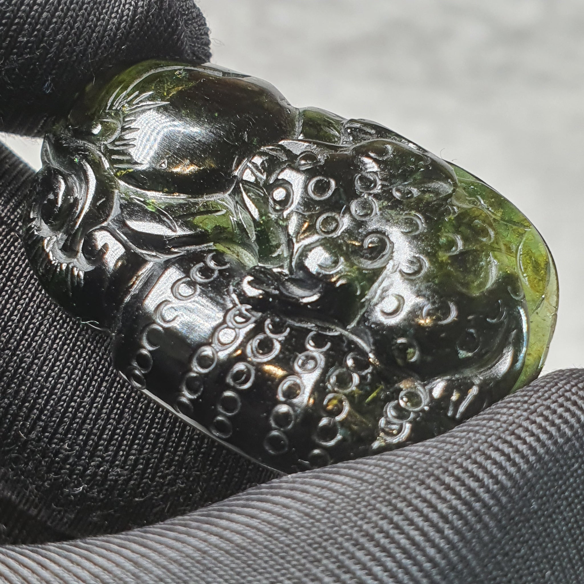 Green tourmaline is known for its nurturing and growth-oriented energy, often linked to prosperity, heart-centred balance, and renewal. The harmonious combination of symbolic imagery and gemstone energy makes this carving ideal for supporting long-term wealth, health, and positive outcomes.