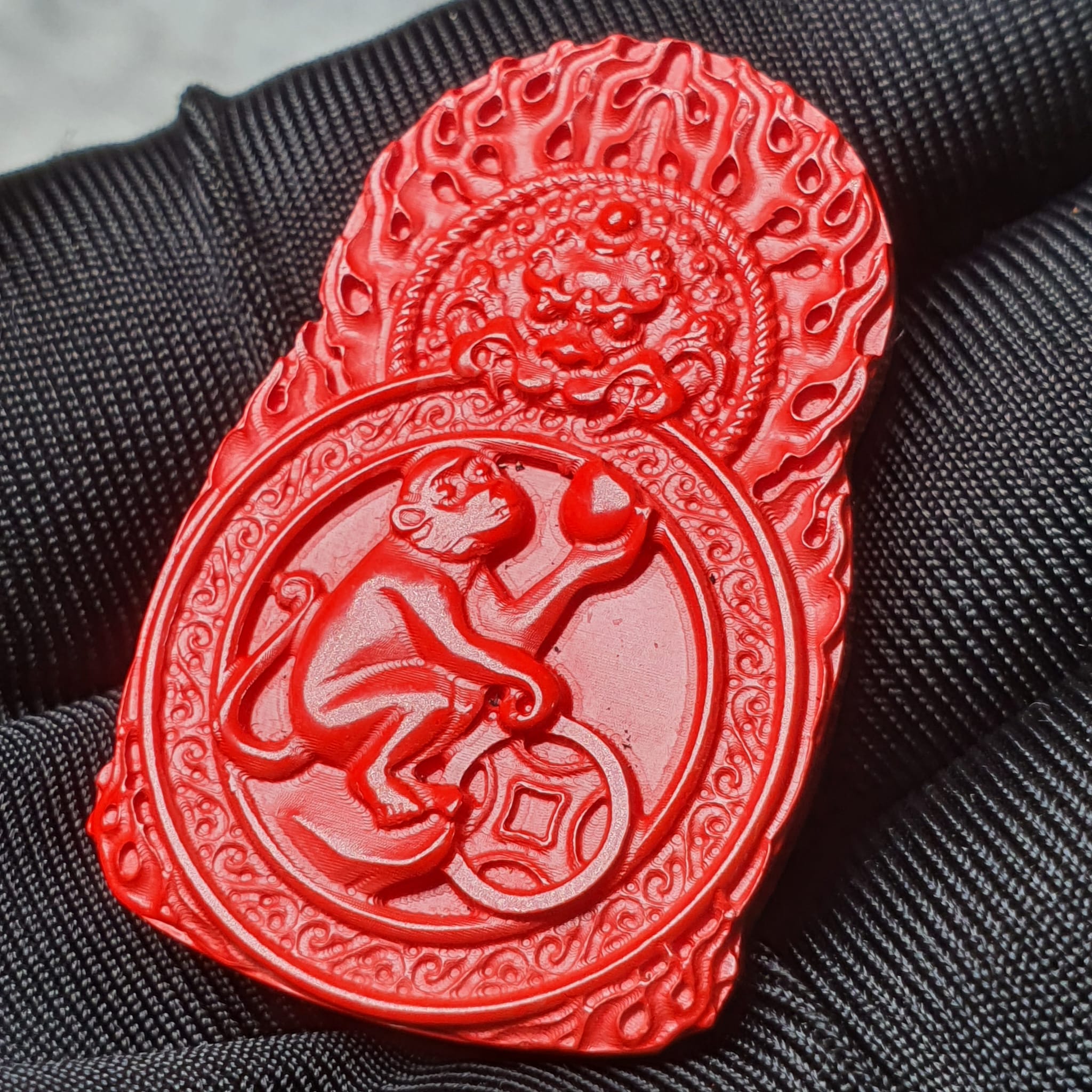 This Guardian Deity pendant is carved from traditional Hong Sha Cinnabar, featuring the Monkey on the front and its corresponding Guardian Deity (守护神) on the back.