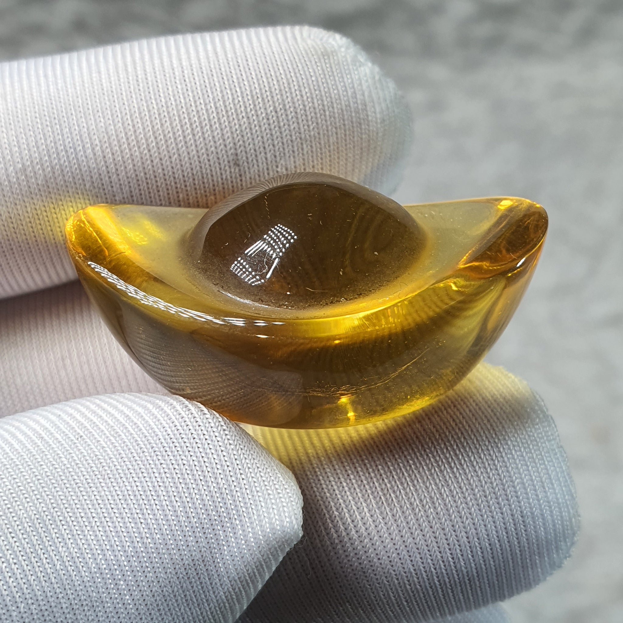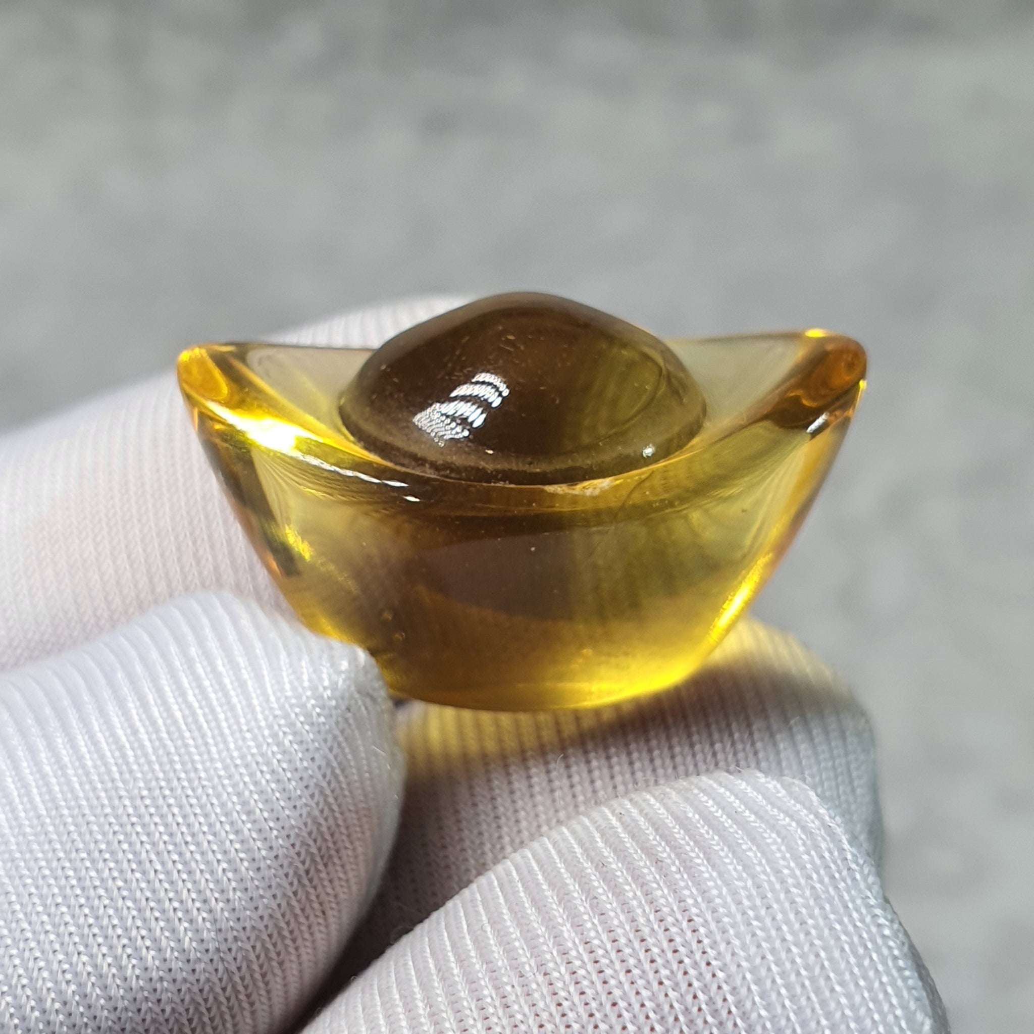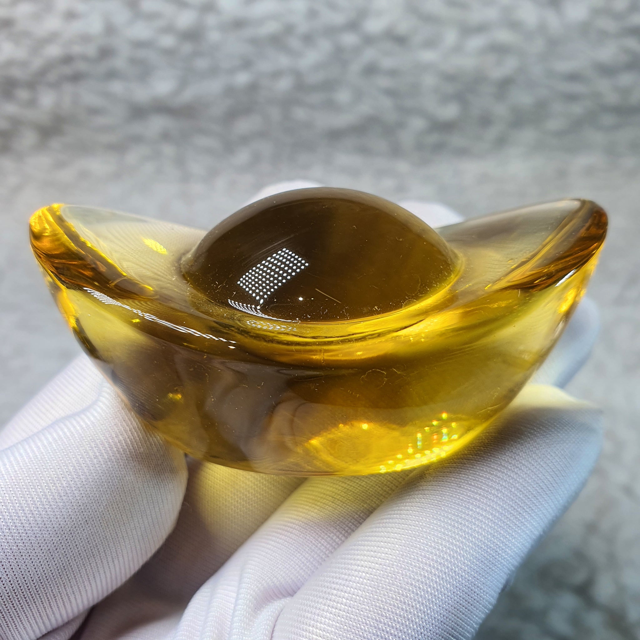 Liu Li is a traditional coloured glass often associated with clarity, auspicious energy, and protection. Shaped into an ingot, this piece symbolises wealth accumulation, prosperity, and financial stability in Feng Shui practice.
