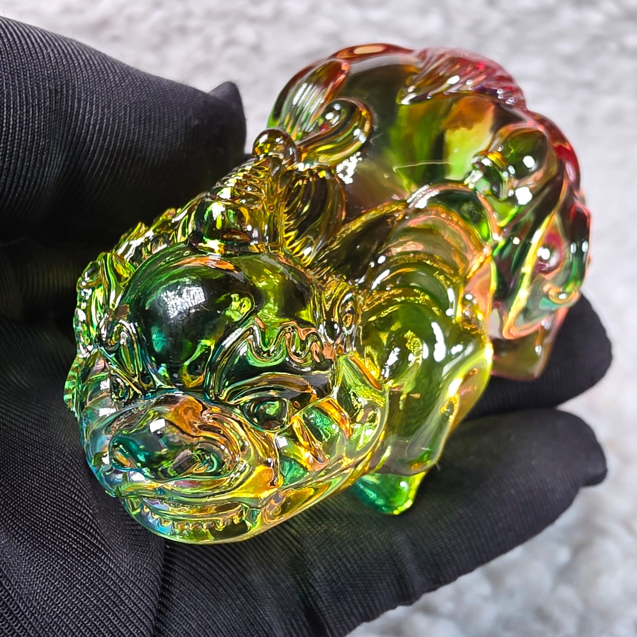 This beautifully crafted Liuli Pixiu (貔貅) is a powerful Feng Shui symbol known for attracting wealth, guarding riches, and dispelling negative energy.