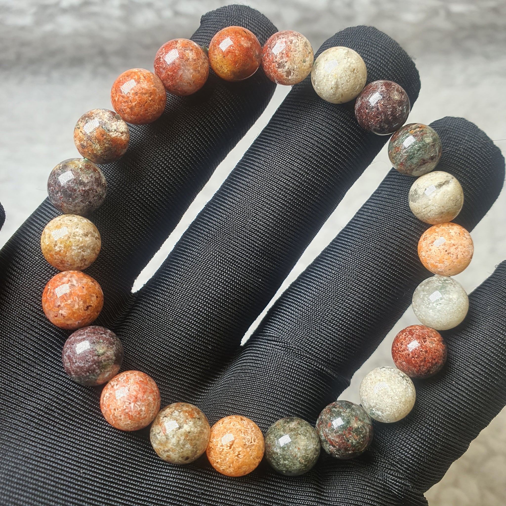 This Full Phantom Mixed Quartz Bracelet is a powerful combination of phantoms in every bead — featuring layers of green, red, yellow, brown, and mineral inclusions that symbolise growth, transformation, and abundance.