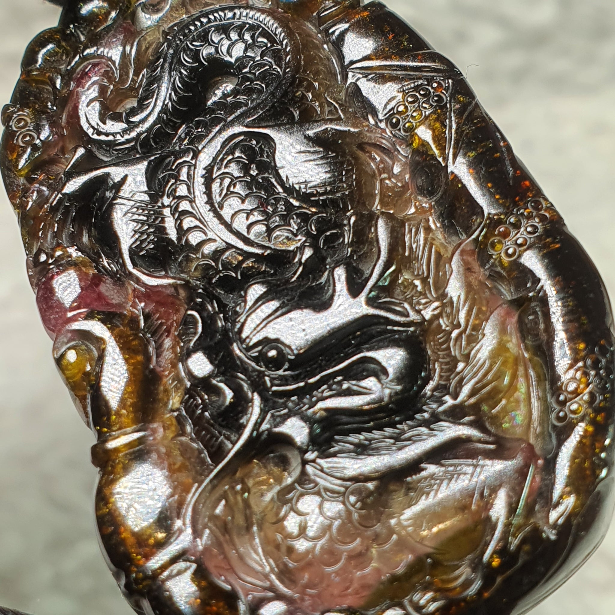 Multi-colour tourmaline is valued for its ability to harmonise different energies, supporting emotional balance, clarity, and positive flow. The natural blend of colours enhances the carving’s visual depth while reinforcing its symbolic meaning of unity and balance.