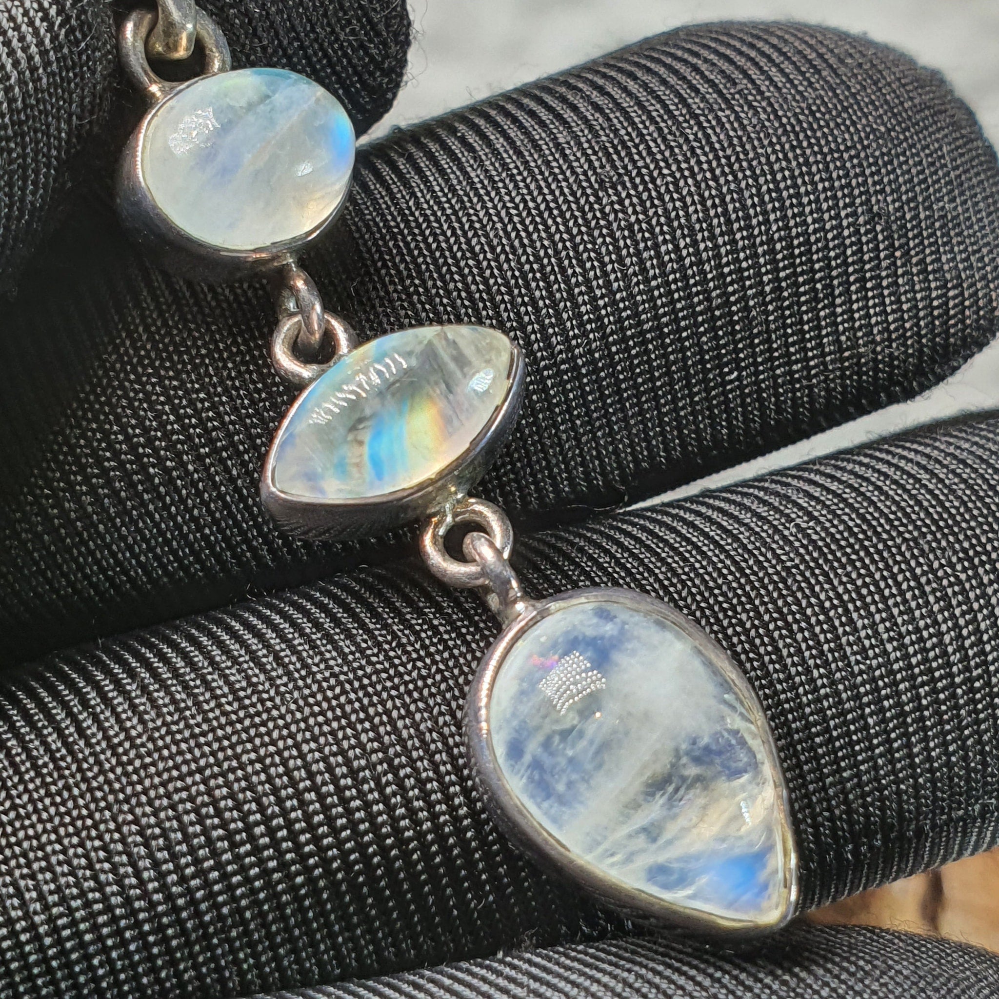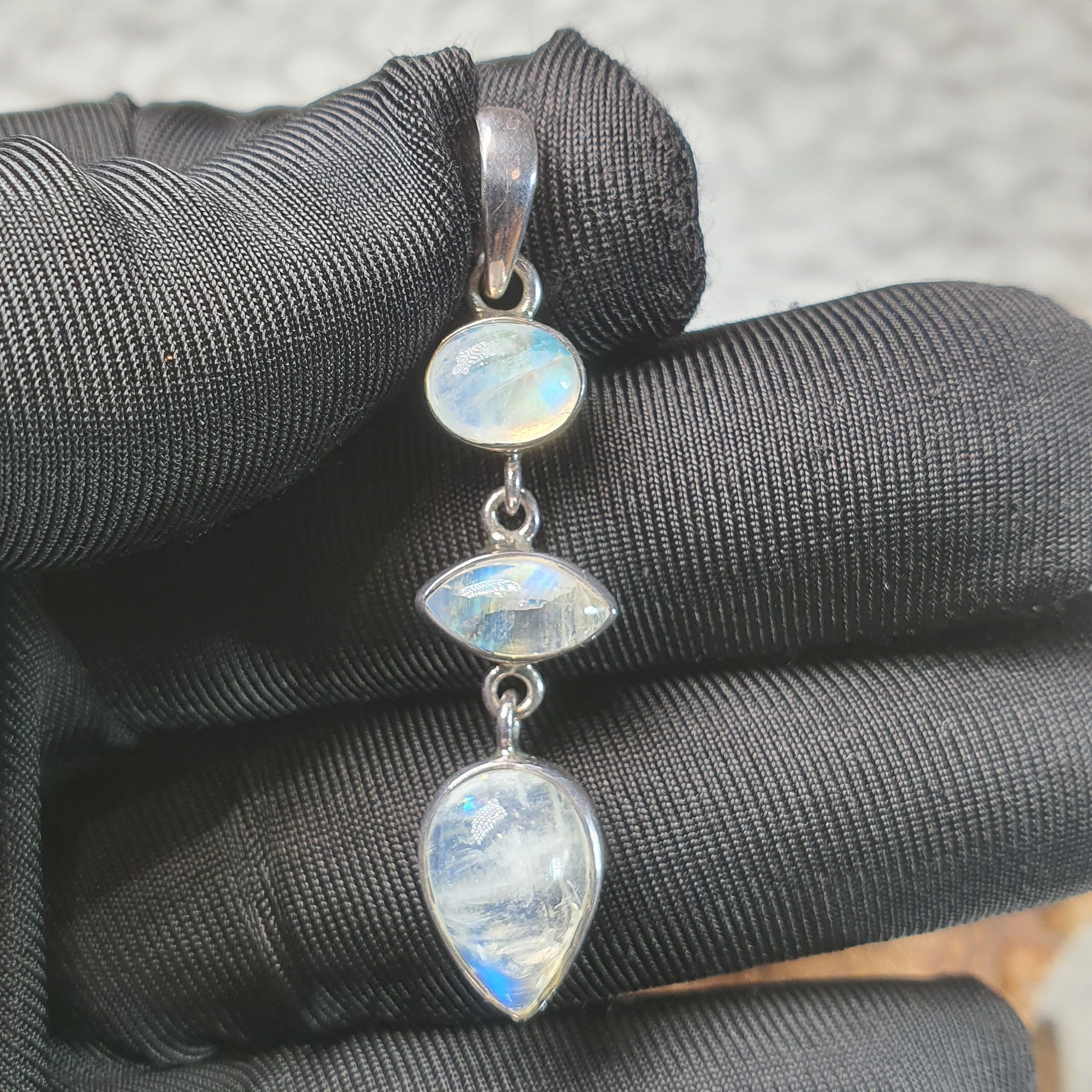 This elegant Natural Moonstone Pendant displays a soft adularescent glow, with gentle blue flashes that shift beautifully under light. Each stone is carefully selected and set to highlight its natural clarity and calming presence.