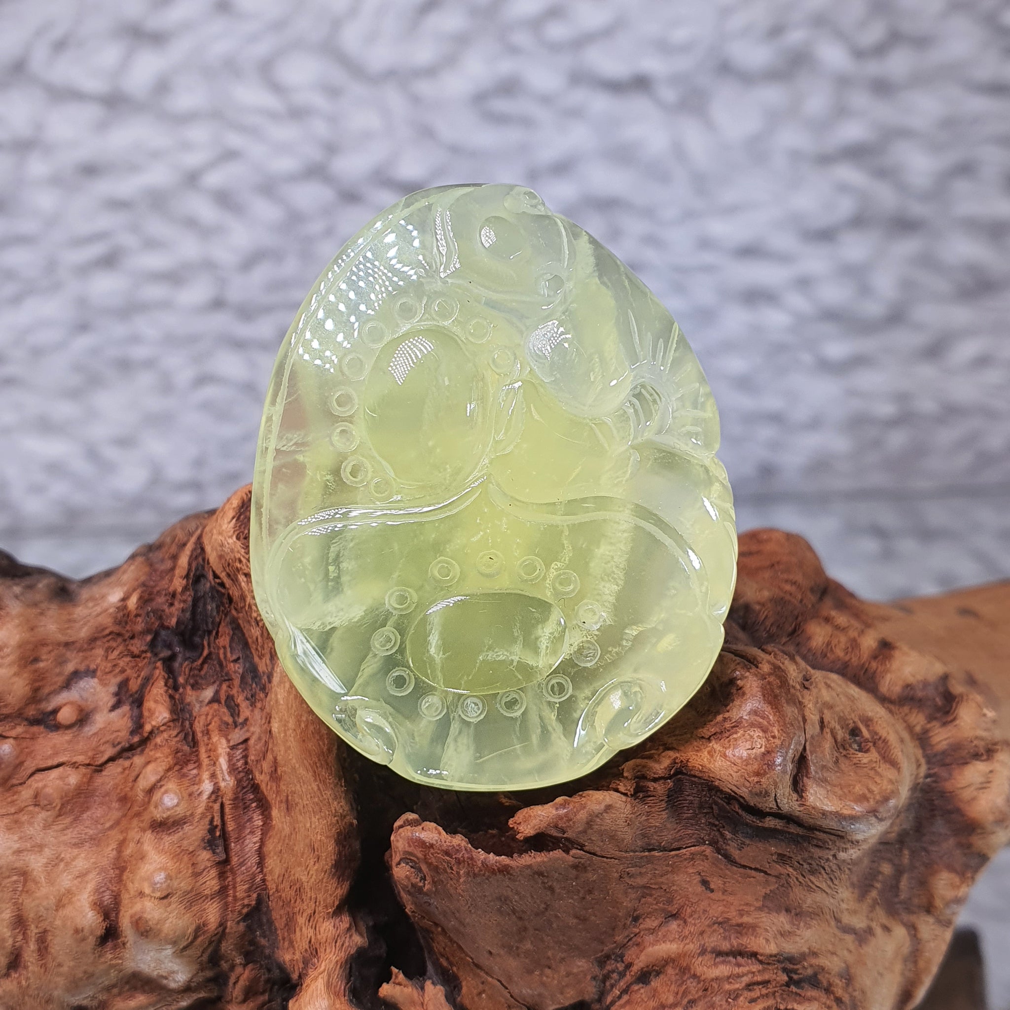 This beautifully hand-carved Prehnite Ruyi Pendant carries the auspicious blessing “事事如意” — may everything go smoothly and as wished.