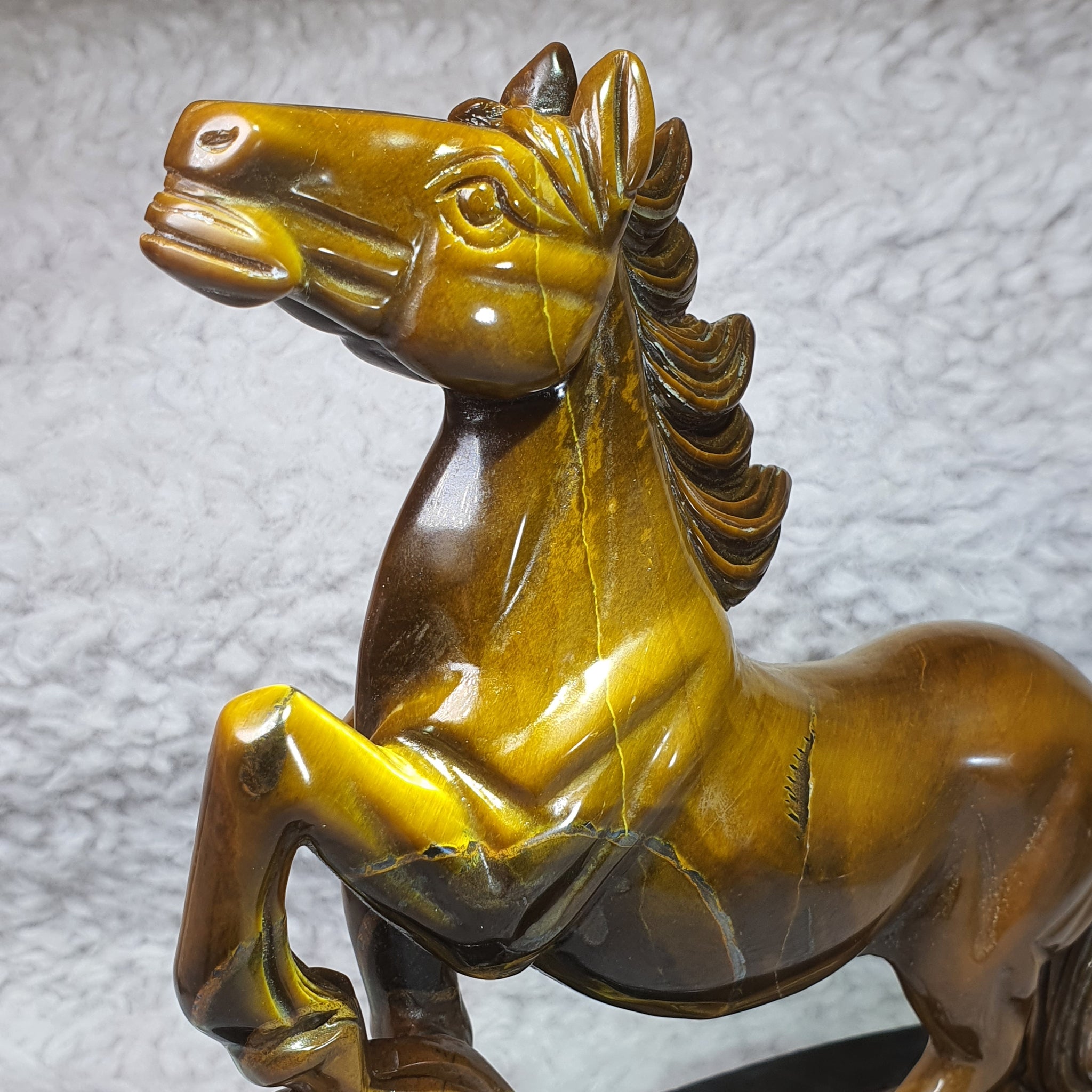 The horse is a powerful symbol of strength, progress, and success, often associated with speed, determination, and positive movement. Carved from Tiger Eye, a stone traditionally linked to confidence, courage, and protection, this piece carries both symbolic meaning and visual presence.